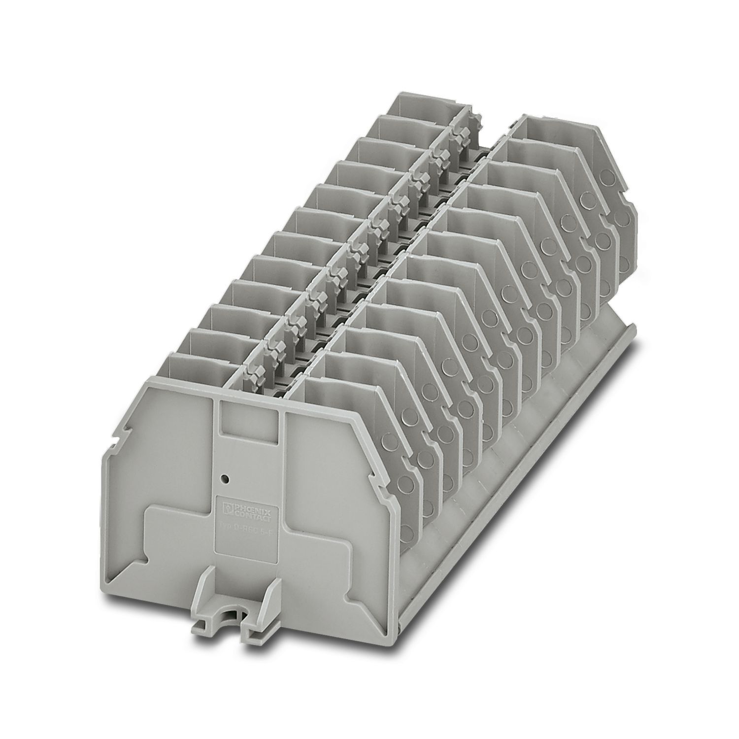 Нанесение больших надписей и сплошной маркировки на внешней стороне и в центре клемм|Монтаж на обычных несущих рейках или прямо в распределительной коробке|Компактное винтовое соединение с помощью кольцевых или вилочных кабельных наконечников|Гайки и токопроводящие элементы зафиксированы в изолирующем корпусе, что предотвращает возможность утери|Устанавливаемый непосредственно на клеммы защитный профиль обеспечивает защиту от прикосновений|Изолирующая перемычка с мостиковым контактом позволяет выполнять коммутируемые поперечные соединения, при этом винт перемычки служит токопроводящим коммутационным звеном|Гнездо для перемычки служит для разветвления цепи при помощи стандартной винтовой перемычки
