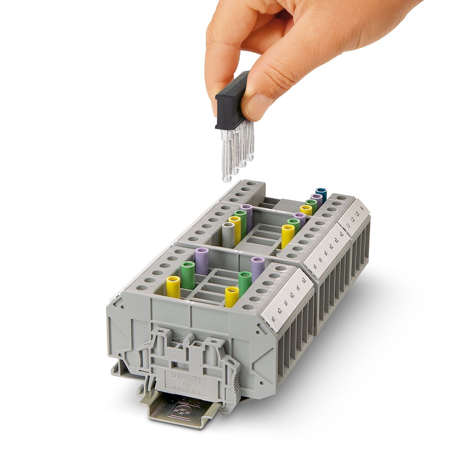 Возможность нанесения крупной маркировки на каждый клеммный контакт|Универсальное основание для установки на несущие рейки NS 32 и NS 35|В сочетании с крючковыми кабельными наконечниками винтовые клеммы с пружинной опорой идеально соответствуют техническим требованиям согласно EATS 50-18|Изолирующая перемычка с мостиковым контактом ISSBI ... позволяет выполнять коммутируемые поперечные соединения с компонентами IS ..., при этом винт перемычки служит токопроводящим коммутационным звеном|Электротехнические клеммы USST ... разработаны специально для применения в области энергоснабжения