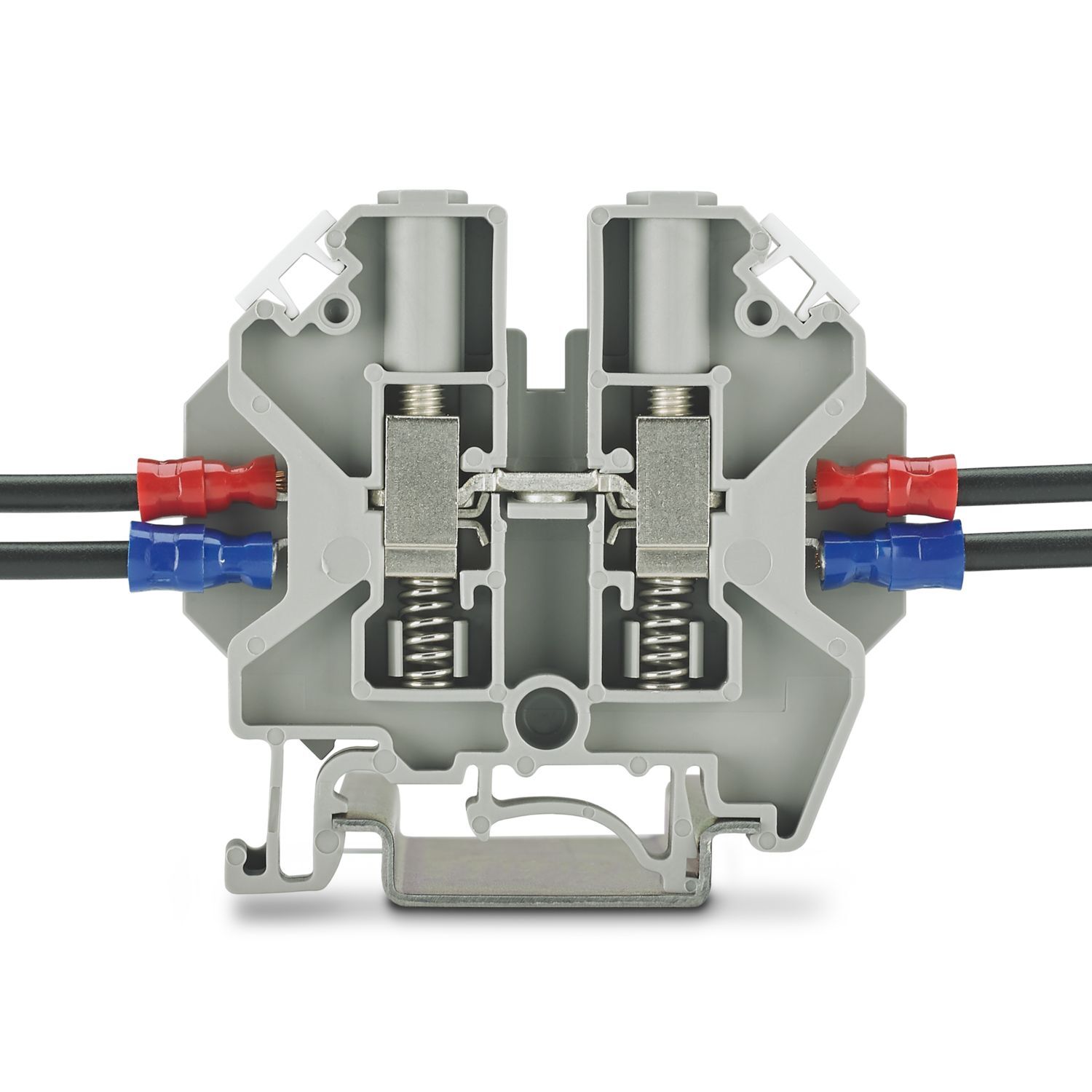 Проходные клеммы, номинальное напряжение: 1000 В, номинальный ток: 41 A, количество точек подсоединения: 2, тип подключения: Винтовой зажим с пружинной опорой, Расчетное сечение: 6 мм2, 1. ярус, cечение: 0,2 мм2 - 10 мм2, тип монтажа: NS 35/7,5, NS 35/15, NS 32, цвет: cерый