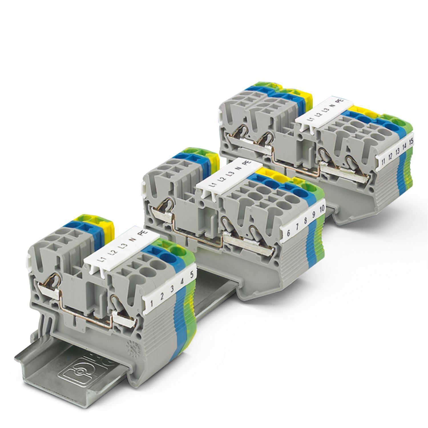 Заземляющая клемма, количество точек подсоединения: 3, тип подключения: Зажимы Push-in, 1. ярус, cечение: 0,14 мм2 - 1,5 мм2, тип монтажа: NS 35/7,5, NS 35/15, цвет: желто-зел.