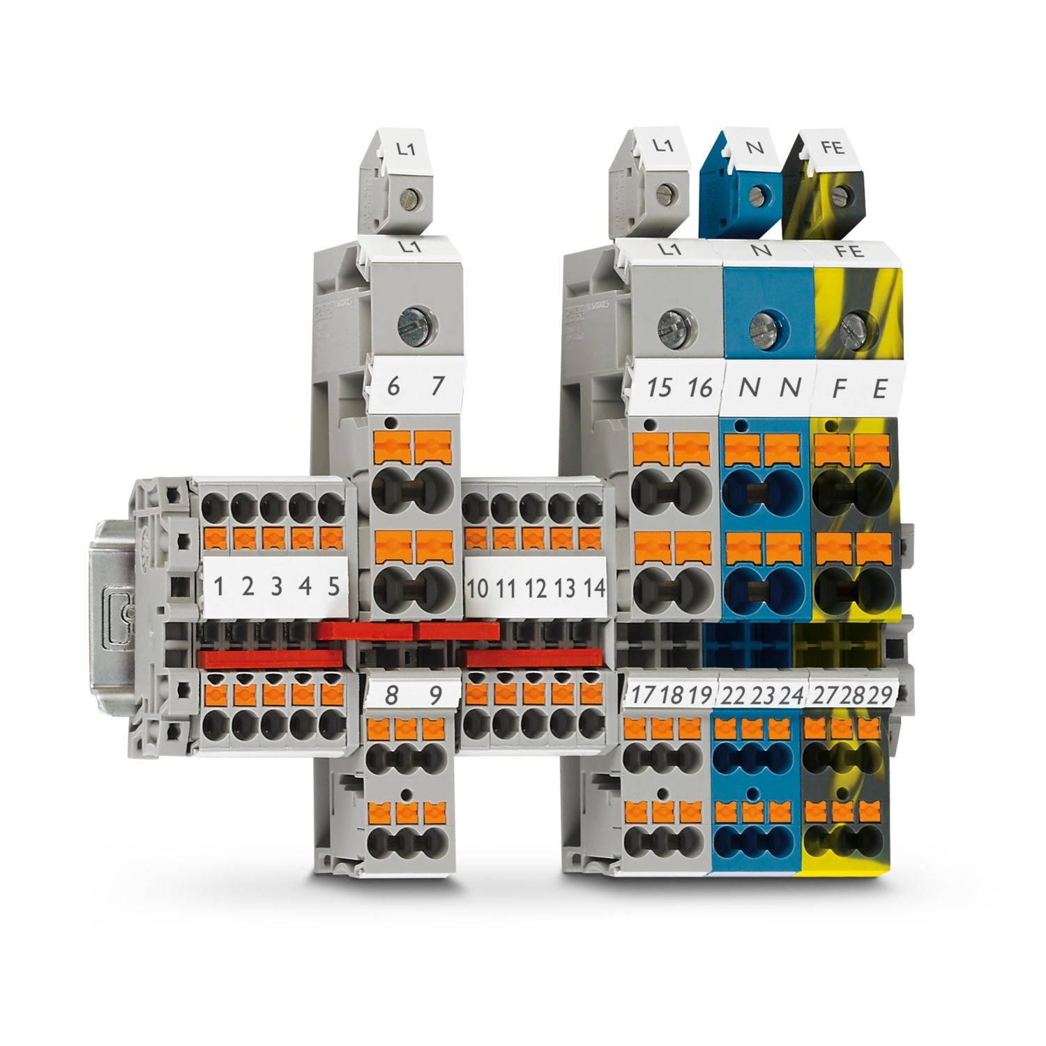Возможность проведения тестирования с помощью функционального канала, а также контрольного гнезда, которым оснащены все клеммы|Помимо общих характеристик изделий системы CLIPLINE complete данные соединительные клеммы с зажимами Push-in отличаются простотой подсоединения жестких или гибких проводников с кабельными наконечниками без использования инструмента|Компактная конструкция и фронтальные разъемы обеспечивают возможность подсоединения проводов в ограниченных монтажных условиях|Зажим push-in используется на внутренней стороне электрошкафа, на стороне конечного потребителя используется универсальный винтовой зажим