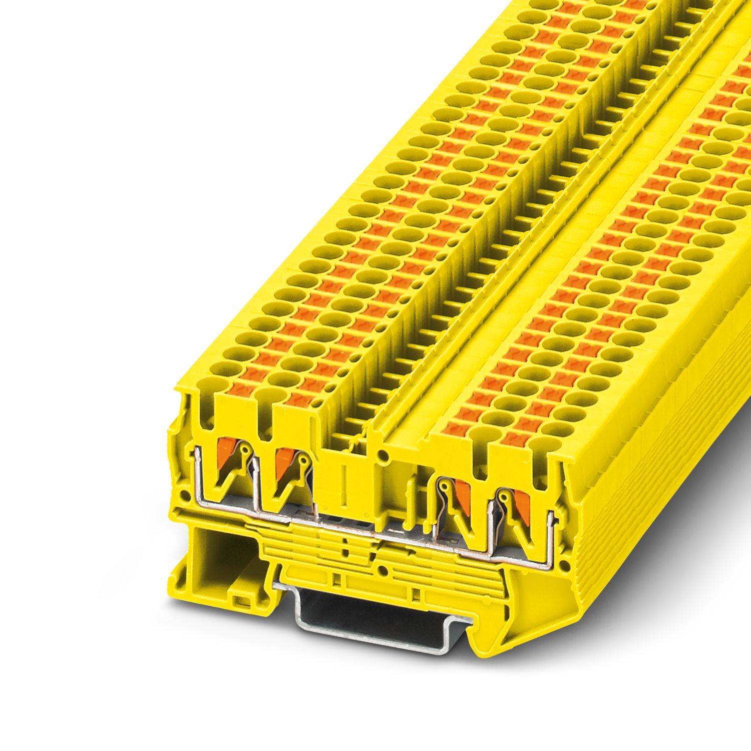 Проходные клеммы, номинальное напряжение: 800 В, номинальный ток: 24 A, количество точек подсоединения: 4, тип подключения: Зажимы Push-in, Расчетное сечение: 2,5 мм2, cечение: 0,14 мм2 - 4 мм2, тип монтажа: NS 35/7,5, NS 35/15, цвет: желтый