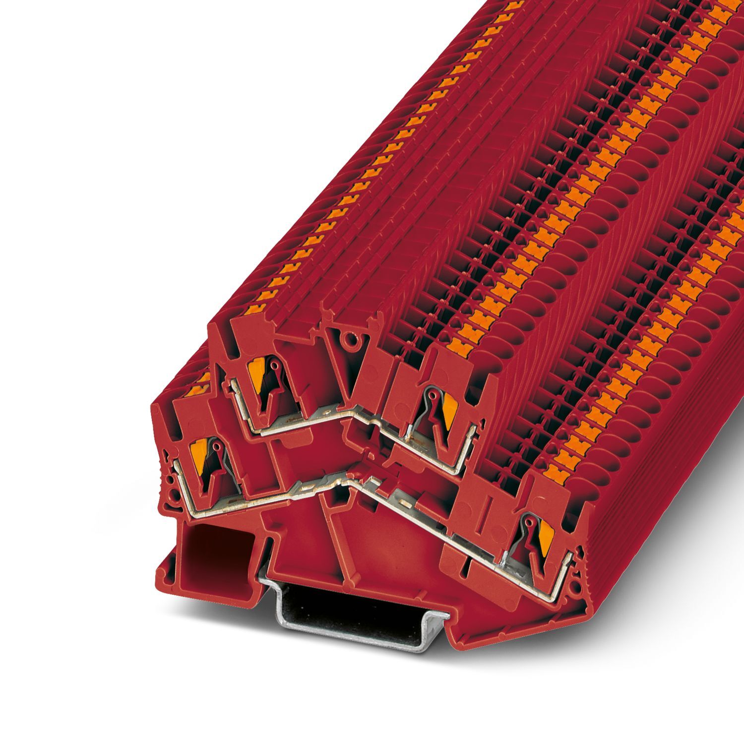 Двухъярусные клеммы, номинальное напряжение: 500 В, номинальный ток: 22 A, тип подключения: Зажимы Push-in, 1. и 2-ий ярус, Расчетное сечение: 2,5 мм2, cечение: 0,14 мм2 - 4 мм2, тип монтажа: NS 35/7,5, NS 35/15, цвет: красный