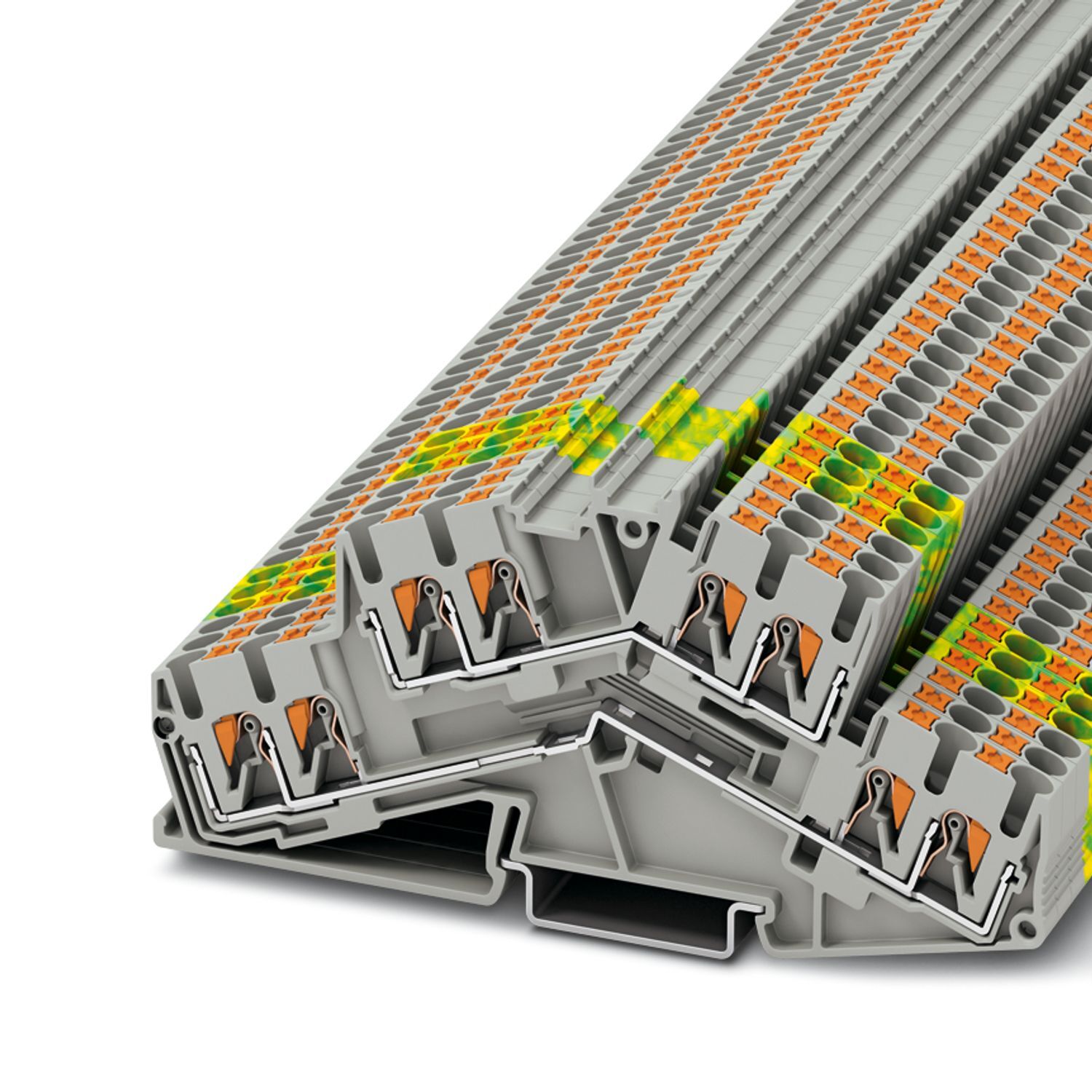 Двухъярусные клеммы, номинальное напряжение: 800 В, номинальный ток: 20 A, тип подключения: Зажимы Push-in, 1. и 2-ий ярус, Расчетное сечение: 2,5 мм2, cечение: 0,14 мм2 - 4 мм2, тип монтажа: NS 35/7,5, NS 35/15, цвет: cерый