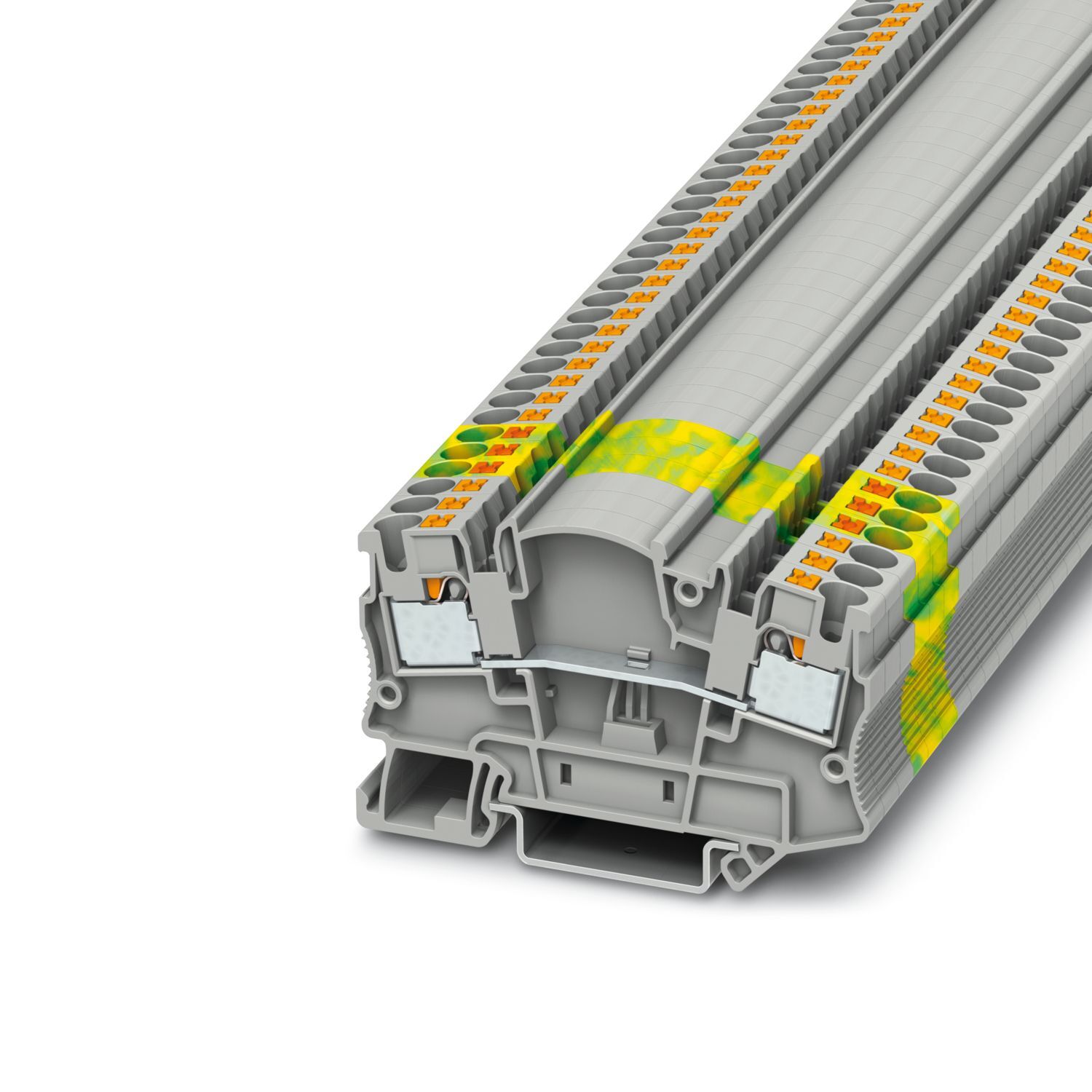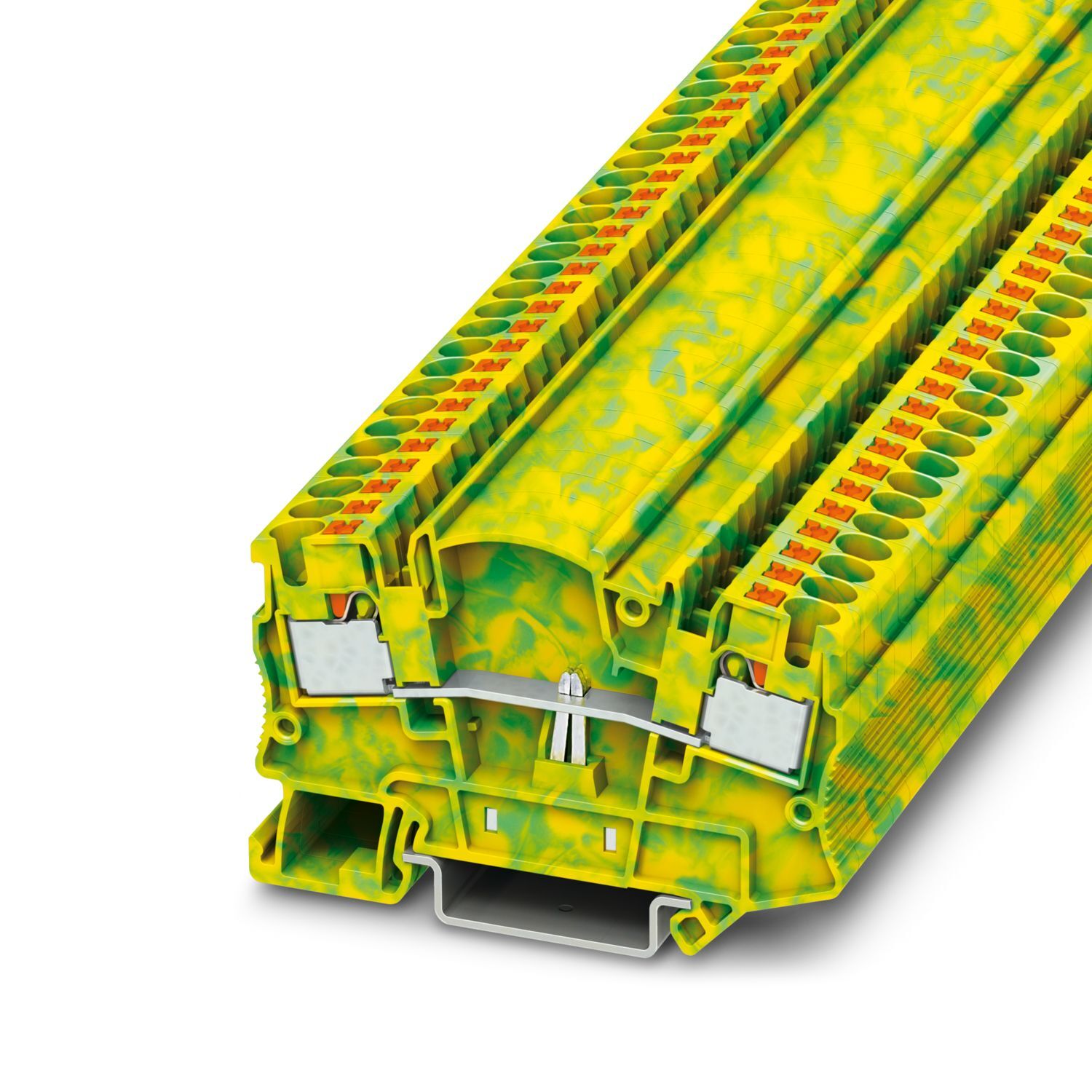 Заземляющая клемма, количество точек подсоединения: 2, тип подключения: Зажимы Push-in, 1. ярус, cечение: 0,2 мм2 - 6 мм2, тип монтажа: NS 35/7,5, NS 35/15, цвет: желто-зел.