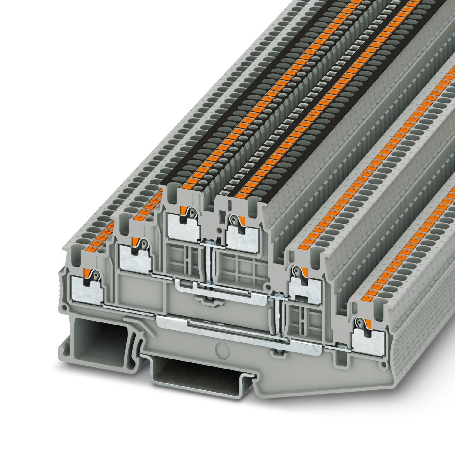 Многоярусный клеммный модуль, с потенциальным разъемом, номинальное напряжение: 500 В, номинальный ток: 15 A, тип подключения: Зажимы Push-in, 1. ярус, Расчетное сечение: 1,5 мм2, cечение: 0,14 мм2 - 1,5 мм2, тип монтажа: NS 35/7,5, NS 35/15, цвет: cерый