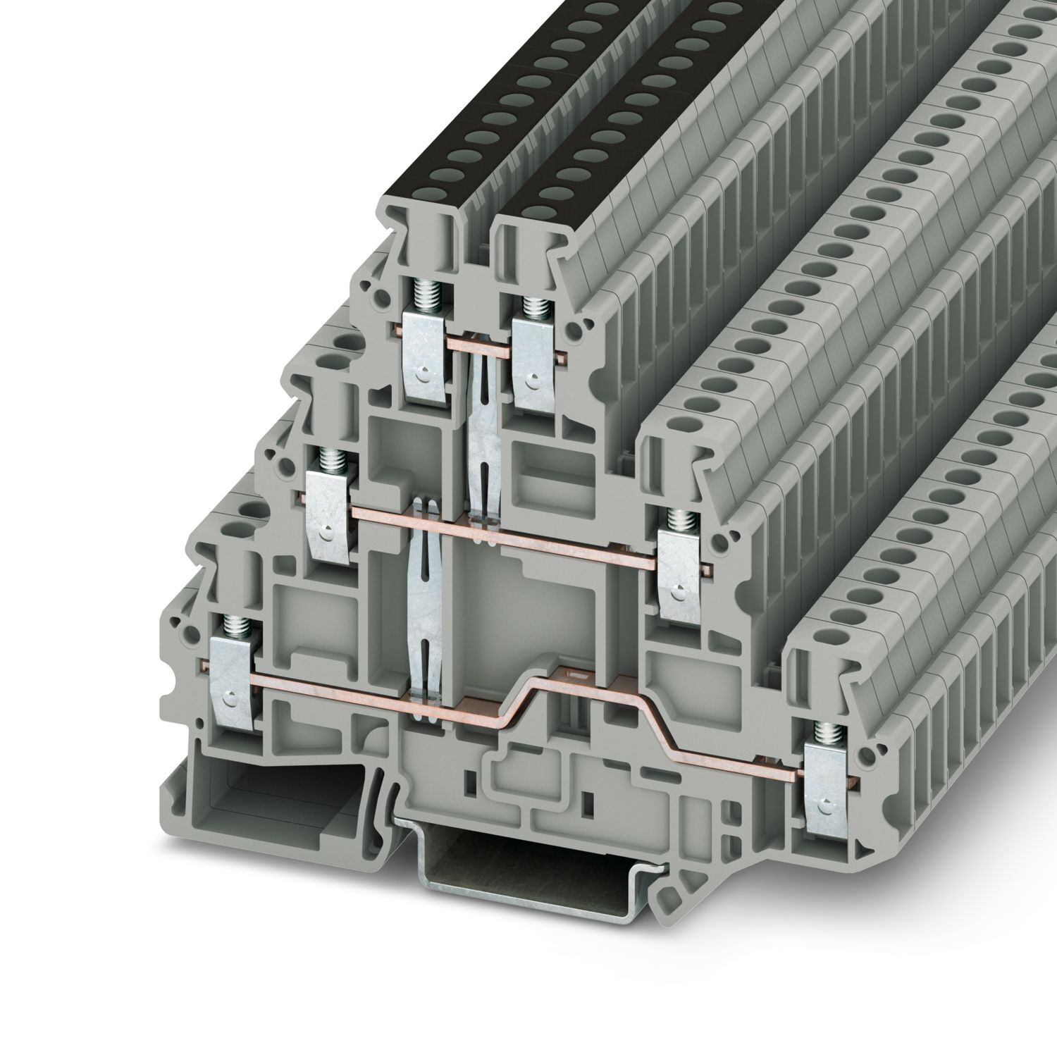 Быстрое выполнение всех задач в области разветвления цепей с помощью двух рядов функционального шунтирования на каждом ярусе|Возможность нанесения крупных маркировочных надписей на каждый контакт для улучшения обзора|Компактные трехъярусные клеммы обеспечивают наивысшую плотность монтажа проводников|Опробовано для железнодорожного транспорта