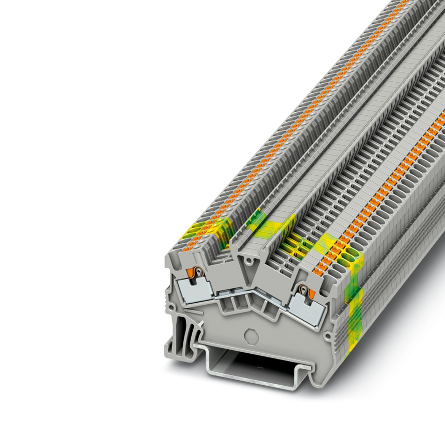 Проходные клеммы, номинальное напряжение: 500 В, номинальный ток: 17,5 A, количество точек подсоединения: 2, тип подключения: Зажимы Push-in, Расчетное сечение: 1,5 мм2, 1. ярус, cечение: 0,14 мм2 - 1,5 мм2, тип монтажа: NS 35/7,5, NS 35/15, цвет: cерый