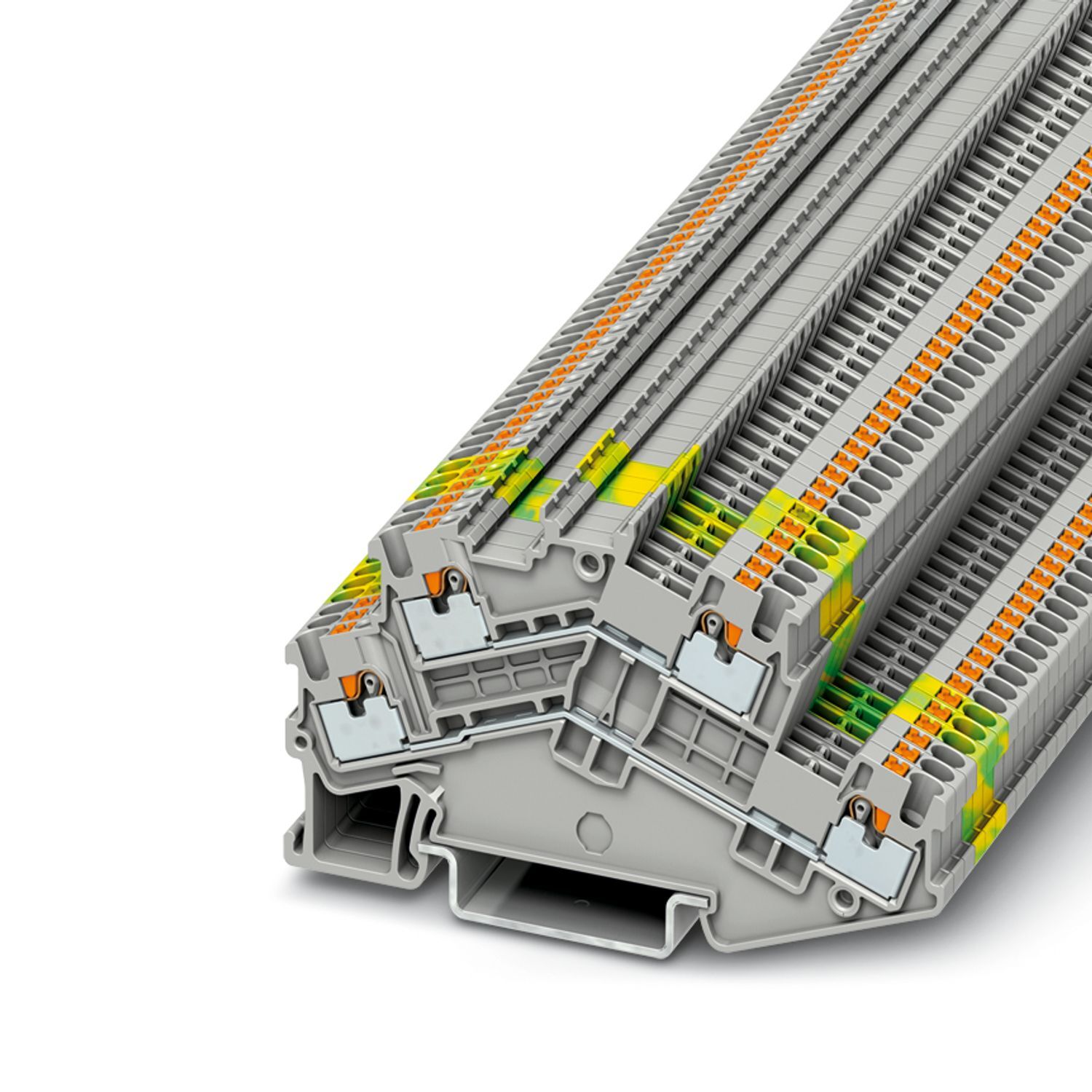 Двухъярусные клеммы, номинальное напряжение: 500 В, номинальный ток: 16 A, тип подключения: Зажимы Push-in, 1. и 2-ий ярус, Расчетное сечение: 1,5 мм2, cечение: 0,14 мм2 - 1,5 мм2, тип монтажа: NS 35/7,5, NS 35/15, цвет: cерый