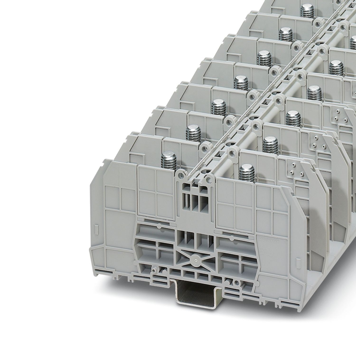 Болтовые клеммы, номинальное напряжение: 1000 В, номинальный ток: 309 A, количество точек подсоединения: 2, полюсов: 1, тип подключения: Болтовые клеммы, Расчетное сечение: 150 мм2, тип монтажа: NS 35/7,5, NS 35/15, цвет: cерый