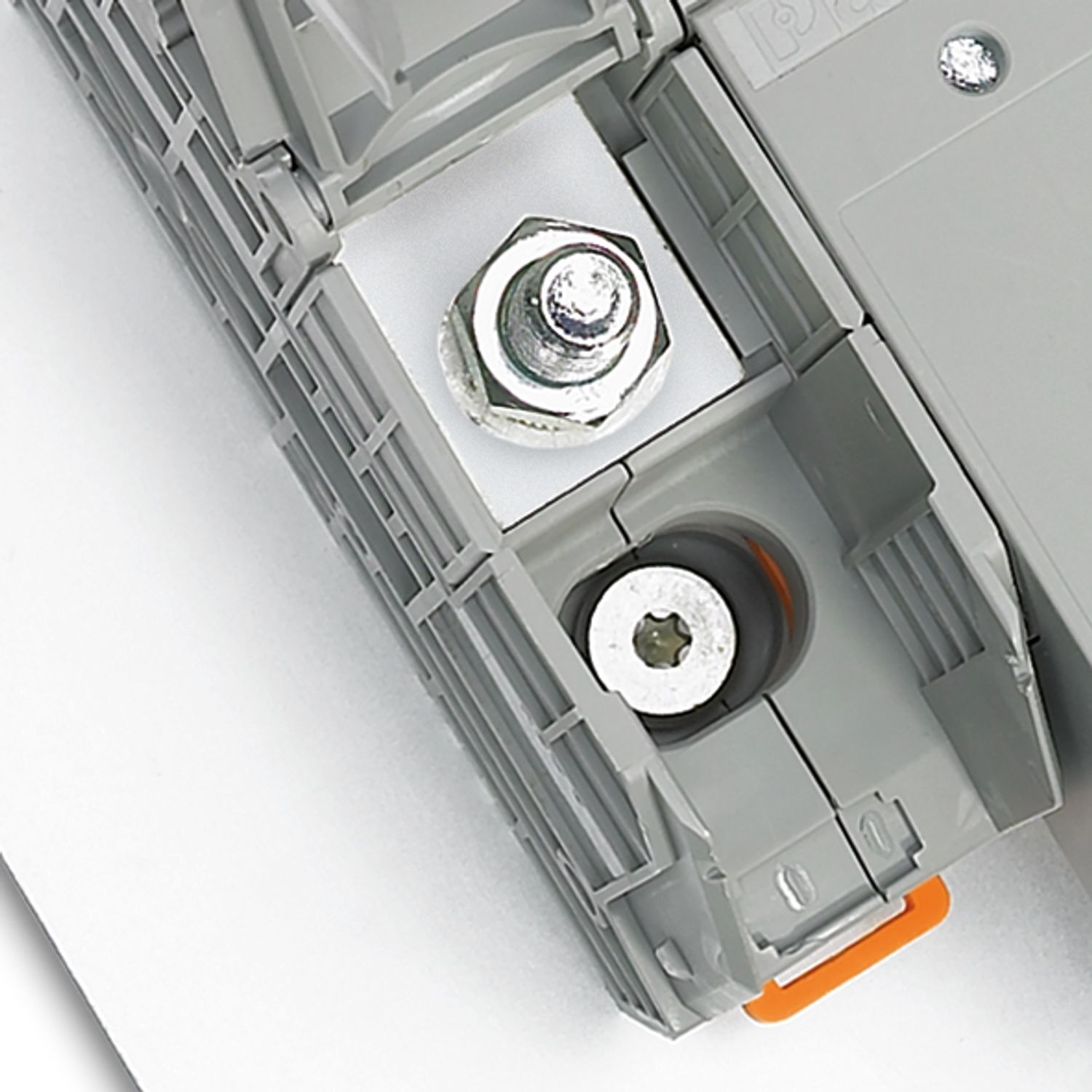 Болтовые клеммы, номинальное напряжение: 1000 В, номинальный ток: 520 A, количество точек подсоединения: 2, полюсов: 1, тип подключения: Болтовые клеммы, Расчетное сечение: 300 мм2, тип монтажа: NS 35/7,5, NS 35/15, цвет: cерый