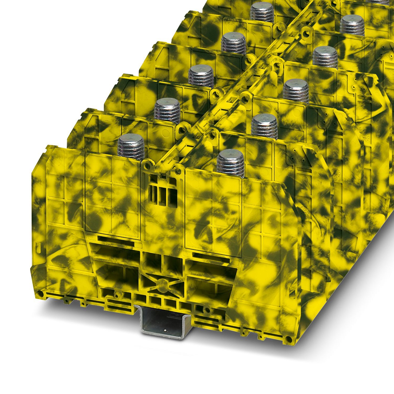 Болтовые клеммы, номинальное напряжение: 1000 В, номинальный ток: 520 A, количество точек подсоединения: 2, полюсов: 1, тип подключения: Болтовые клеммы, Расчетное сечение: 300 мм2, тип монтажа: NS 35/7,5, NS 35/15, цвет: черный/желтый