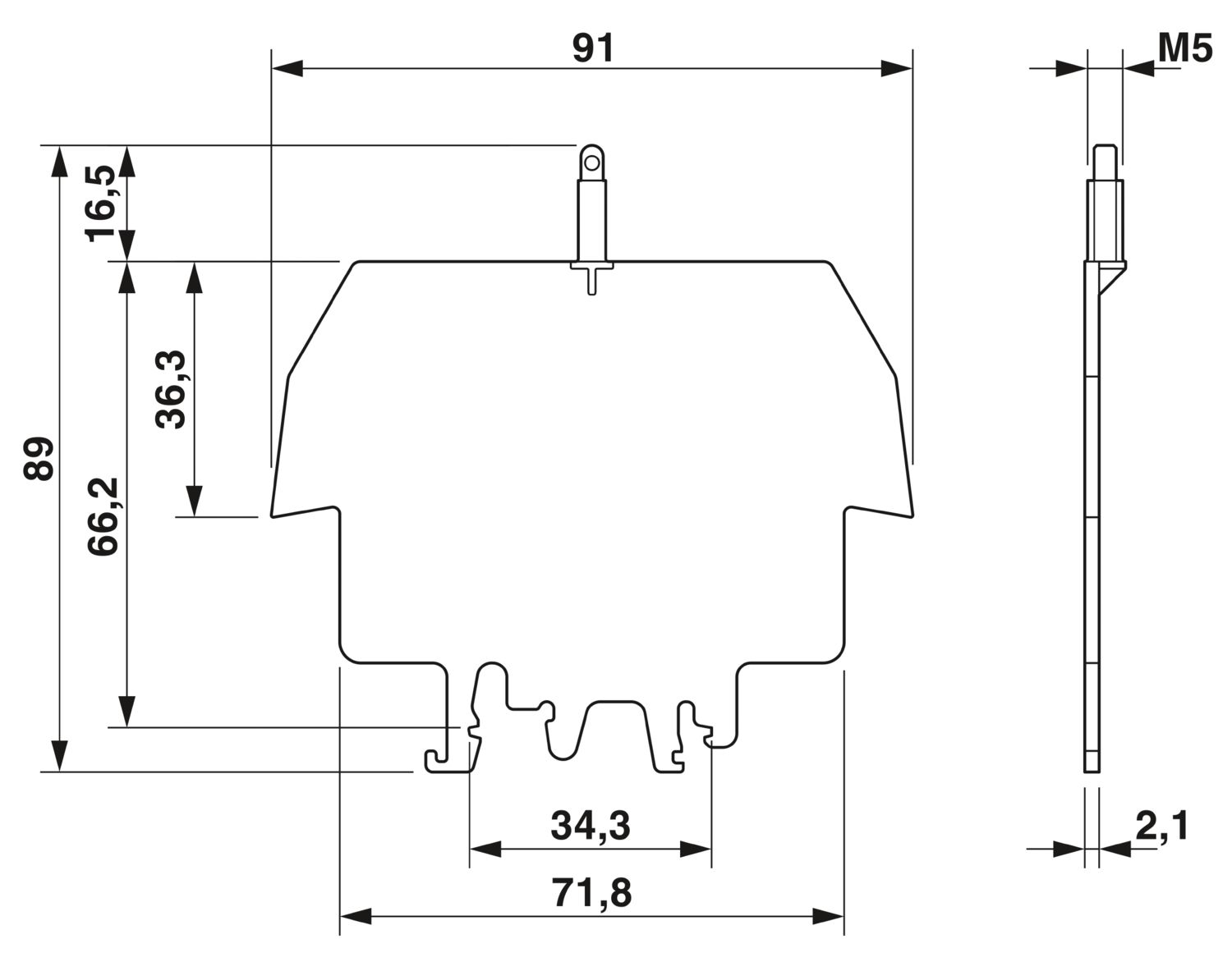 Опорная рейка с возможностью опломбирования, для монтажа на NS 35/7,5 и крепления защитного профиля AP 3, с пластиковой гайкой с накаткой M5, толщина: 2 мм