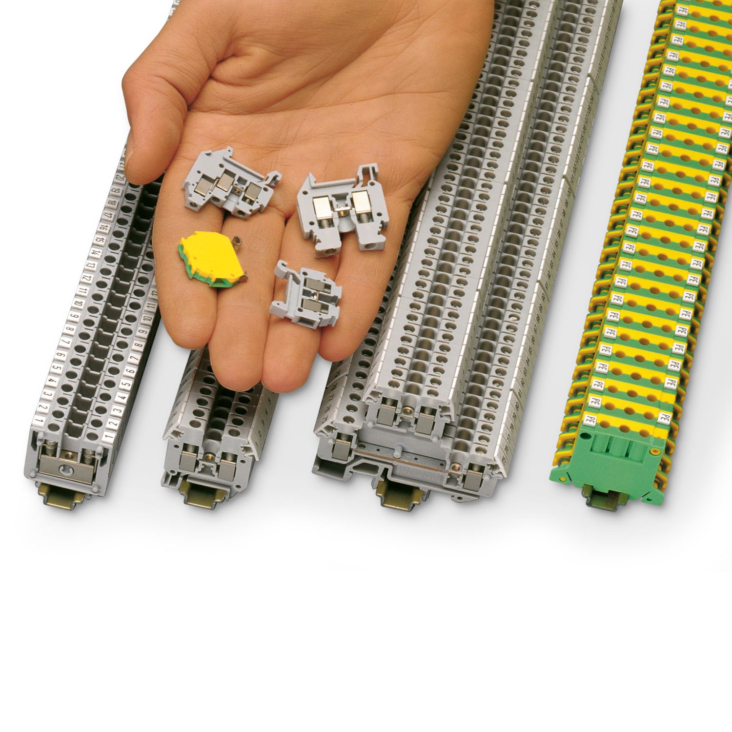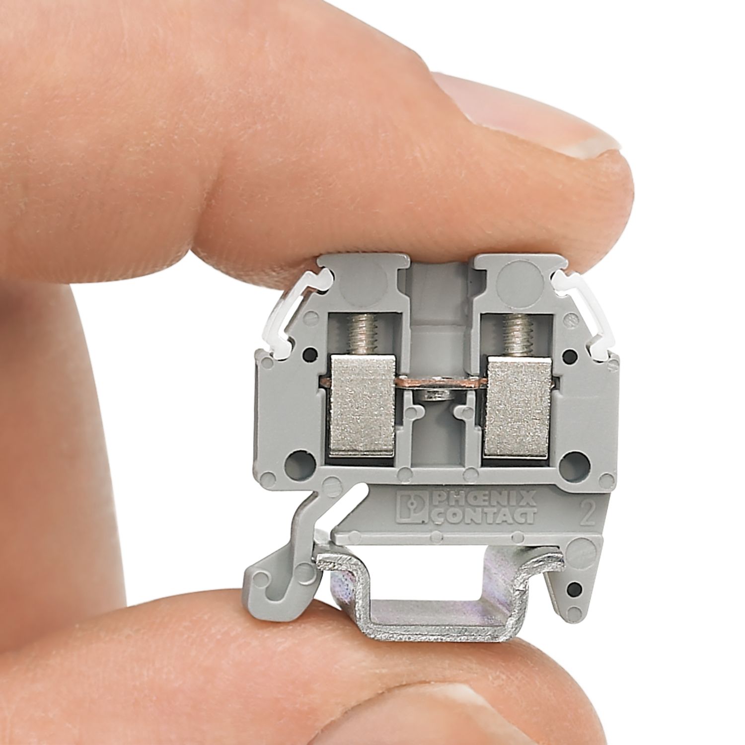 Микроклемма, номинальное напряжение: 400 В, номинальный ток: 17,5 A, тип подключения: Винтовые зажимы, Расчетное сечение: 1,5 мм2, cечение: 0,14 мм2 - 1,5 мм2, тип монтажа: NS 15, цвет: cерый